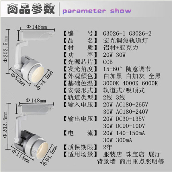 3、宏光調(diào)焦軌道燈G3026采用原廠COB技術(shù)封裝的LED集成光源,散熱效果佳,光色柔和純正;