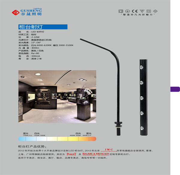 | 品名 | LEDCOB長桿燈,高端柜臺射燈 |