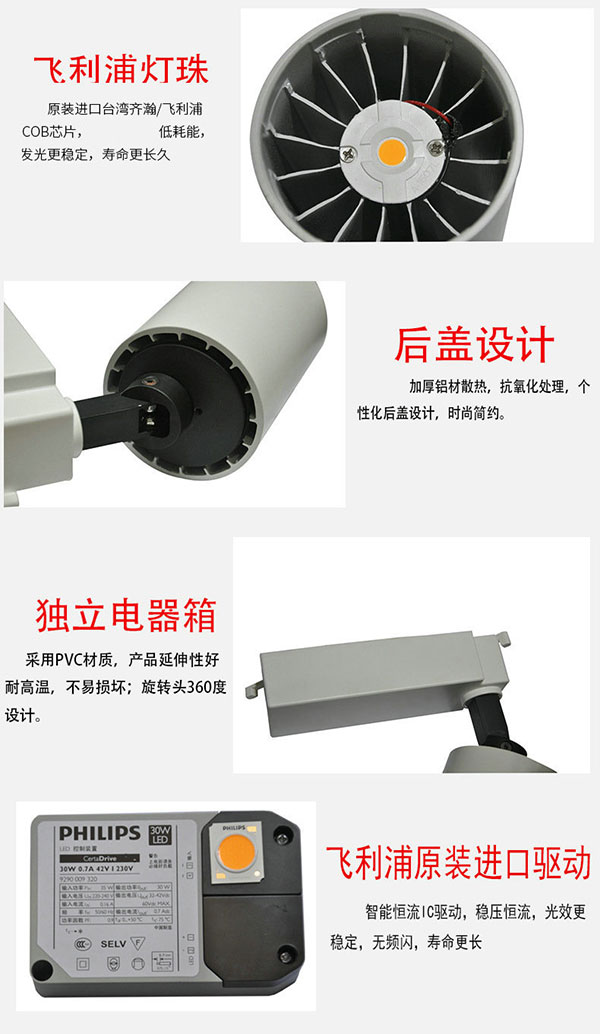 呈燁照明COB軌道燈系列產(chǎn)品采用進(jìn)口飛利浦光源、驅(qū)動,保證還原、展現(xiàn)出產(chǎn)品的真實色彩;驅(qū)動電源確保使用50000小時,性能穩(wěn)定,稱的上是軌道燈中的優(yōu)等配置。