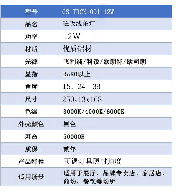 磁吸線條燈-GS-TRCX1001-12W產(chǎn)品特點: