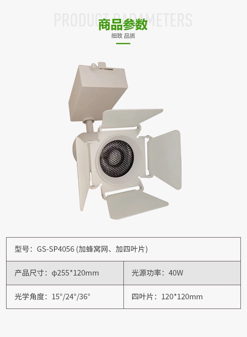軌道燈加蜂窩網(wǎng)、加四葉片