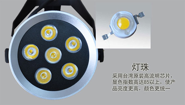 3、LED軌道燈燈體經(jīng)過高溫壓鑄、氧化,外觀顏色均勻,不腿色