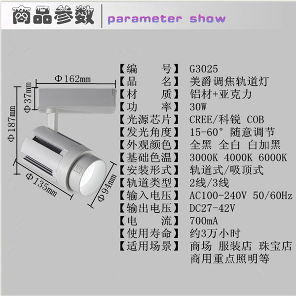 調(diào)焦調(diào)光軌道燈GS-G3025產(chǎn)品特點(diǎn):