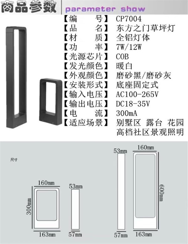戶(hù)外東方之門(mén)LED草坪燈GS-CP7004產(chǎn)品特點(diǎn):