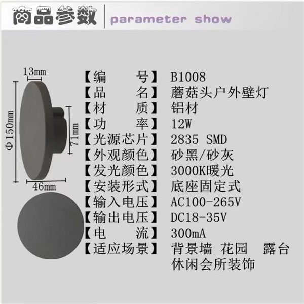 戶外LED圓形壁GS-B1008產(chǎn)品特點: