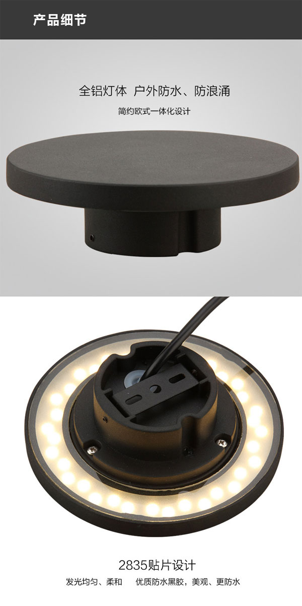 3、庭院圓形LED壁光效好,顯色性強,逼真程度高;