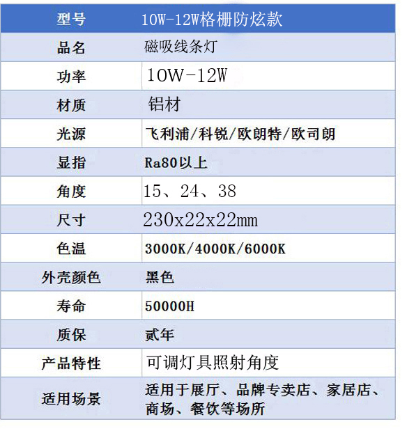 型號(hào):格柵防炫款1、優(yōu)質(zhì)鋁型材燈體,表面陽(yáng)極氧化處理或根據(jù)環(huán)境顏色靜電噴涂處理,耐沖擊、高強(qiáng)度鋼化玻璃面罩;