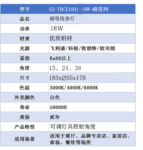 型號:GS-TRCX1001-18W-蜂窩網(wǎng)1、優(yōu)質(zhì)鋁型材燈體,表面陽極氧化處理或根據(jù)環(huán)境顏色靜電噴涂處理,耐沖擊、高強度鋼化玻璃面罩;