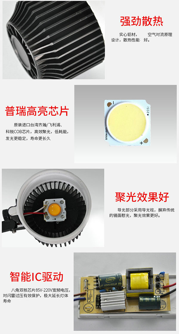 3、LED射燈高品質(zhì)光照,環(huán)保,節(jié)能,經(jīng)濟(jì)效益特佳,超長壽命,50000小時,耐用更省心。4、LEDCOB軌道燈適用于展廳、商店照明、汽車陣列室、品牌專賣店、等一切場所。