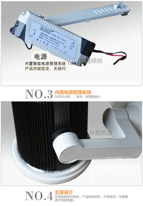 3、LED軌道燈燈體經(jīng)過高溫壓鑄、噴漆、烘烤,外觀顏色均勻,不腿色